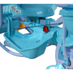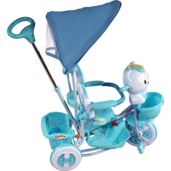 Wielofunkcyjny rowerek trójkołowy z daszkiem.