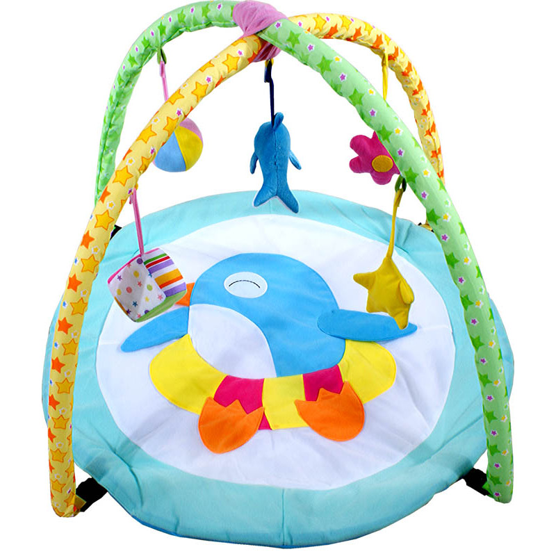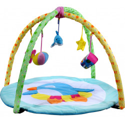 Ta śliczna kolorowa mata edukacyjna posiada bajecznie kolorowe grzechotki w postaci piłeczki i kostki, pluszowe piszczące gwiazdki, delfinka oraz szeleszczące detale, które znakomicie rozwijają zmysł dotyku oraz wrodzoną ciekawość maluszka .
