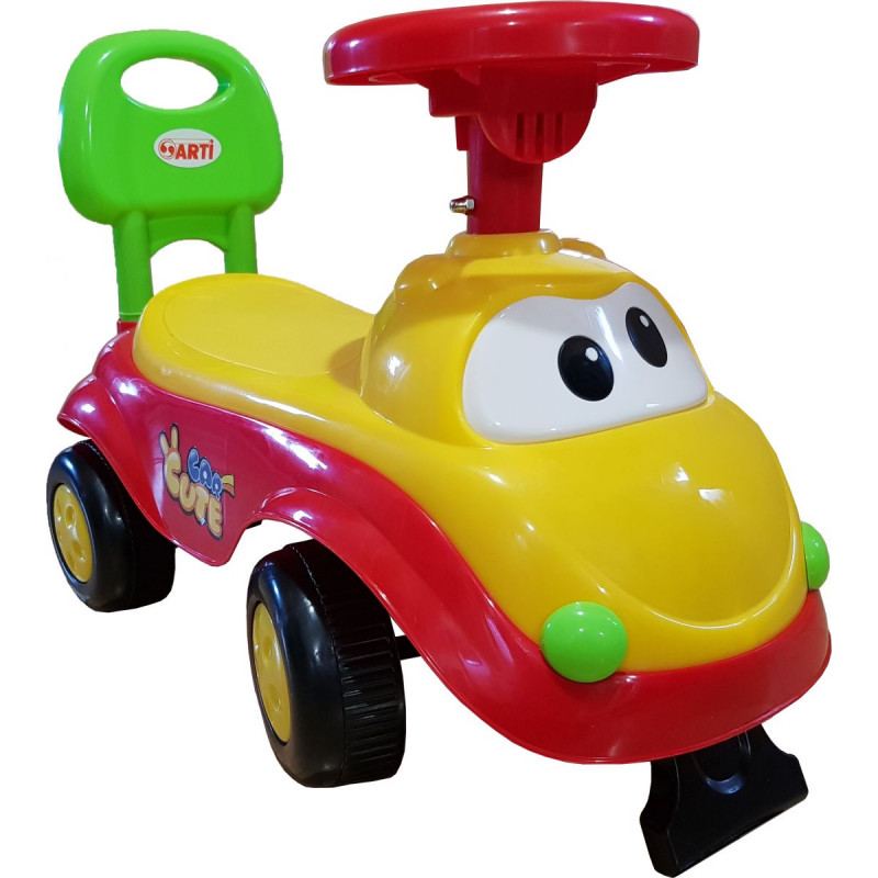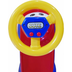 Jeździdło ARTI CuteCar Music 612A jest eleganckie, wykonane z bardzo wytrzymałych plastików. Na wyposażeniu posiada bezpieczne oparcie, oraz zabezpieczenia przed wywrotką do przodu i tyłu. Jeździk dodatkowo posiada trzy melodyjki w kierownicy, oraz klakson, zasilane dwoma bateriami AA (zwykłe paluszki). Maksymalne obciążenie 25kg.